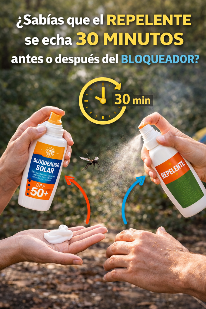 ¿Sabías que el REPELENTE se echa 30 MINUTOS antes o después del BLOQUEADOR?