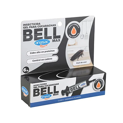 El Bell Max Gel Cucarachicida es un cebo formulado específicamente para el control de cucarachas (incluyendo especies como Blattella germanica, Blatta orientalis y Periplaneta americana) en entornos domésticos, comerciales o industriales. Su formulación a base de imidacloprid 2,15 g/100 cc garantiza una acción letal directa y por contacto secundario mediante trofolaxia.