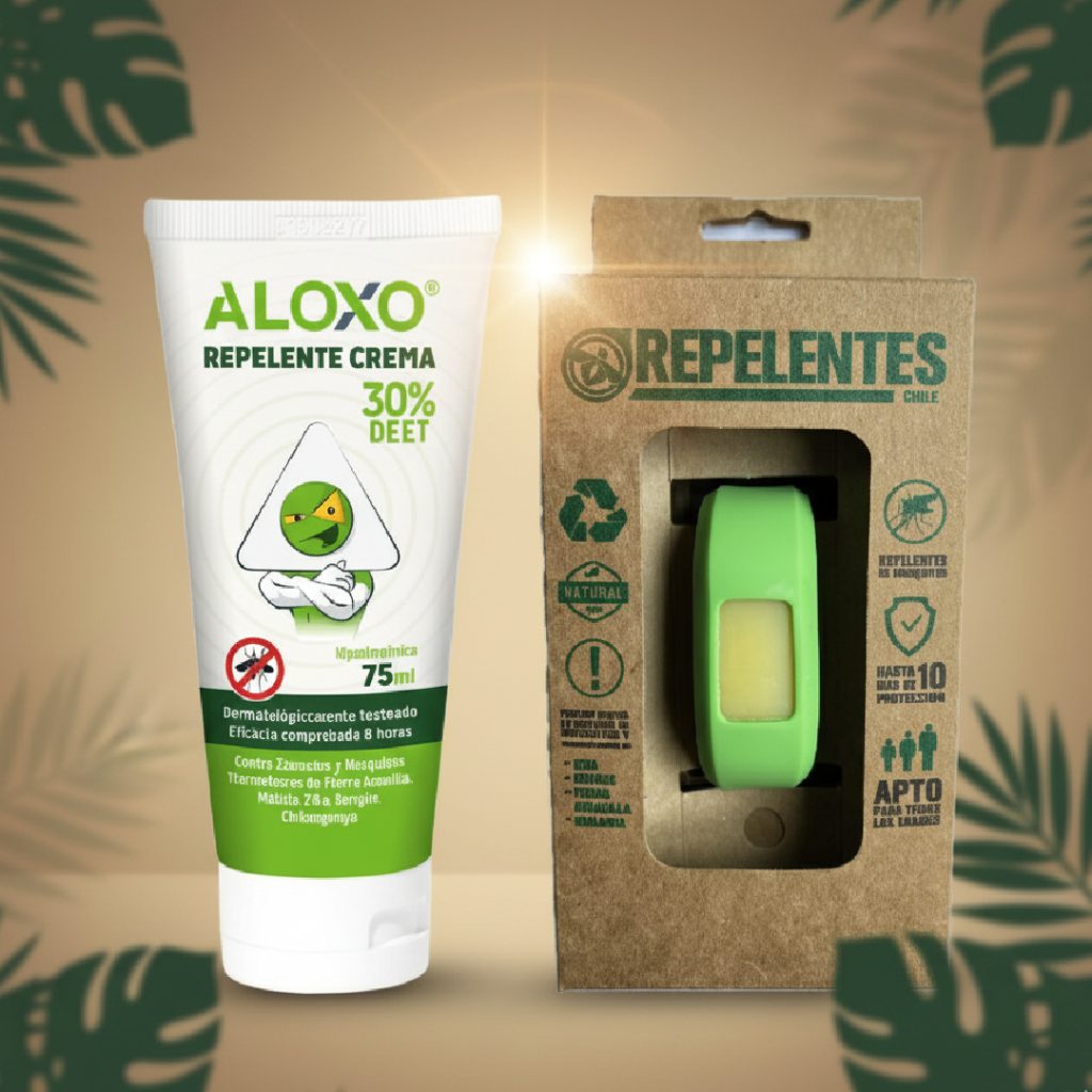 Incluye una crema repelente ALOXO con 30% DEET en un práctico formato pocket de 75 ml y una pulsera repelente de silicona con diseño deportivo. Protección completa y eficaz contra mosquitos transmisores de enfermedades como la fiebre amarilla, el virus Zika y el Dengue. Ideal para el botiquín familiar y perfecto para llevar en la cabina del avión.